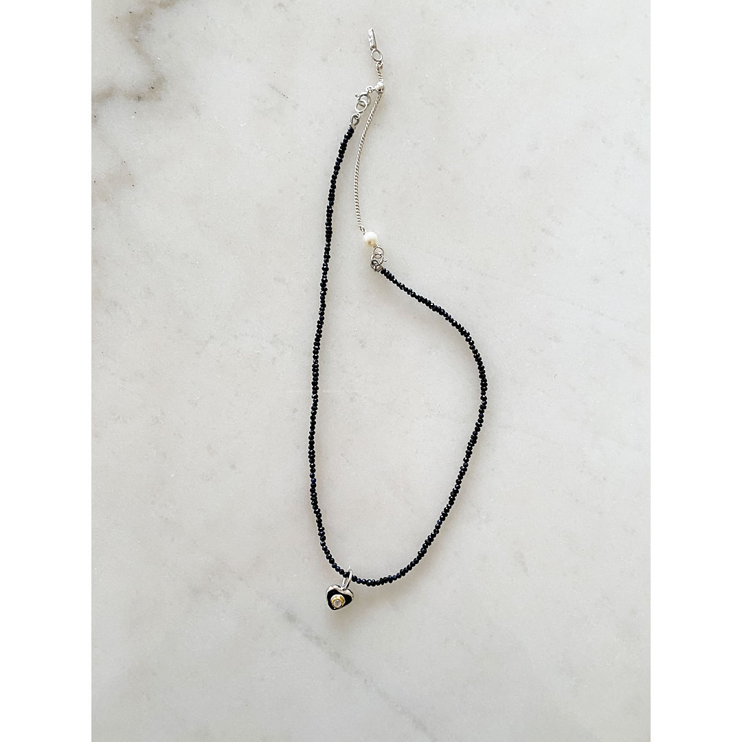 シルバーハートの中央に天然石を配した、