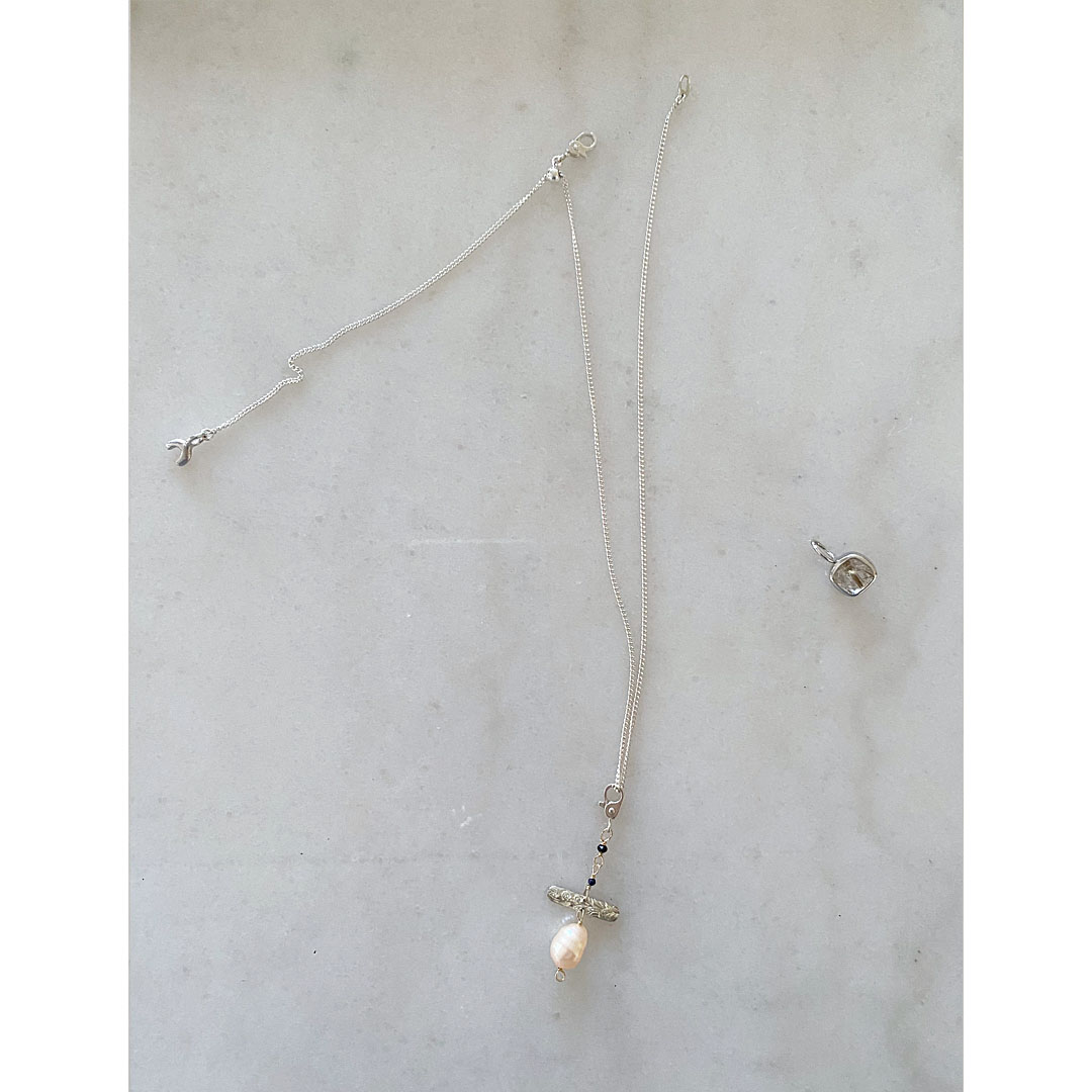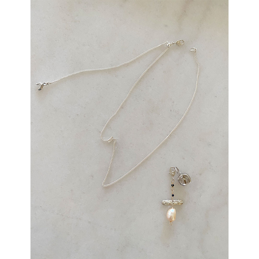 繋いだ個性的なフォルムのペンダントトップです。